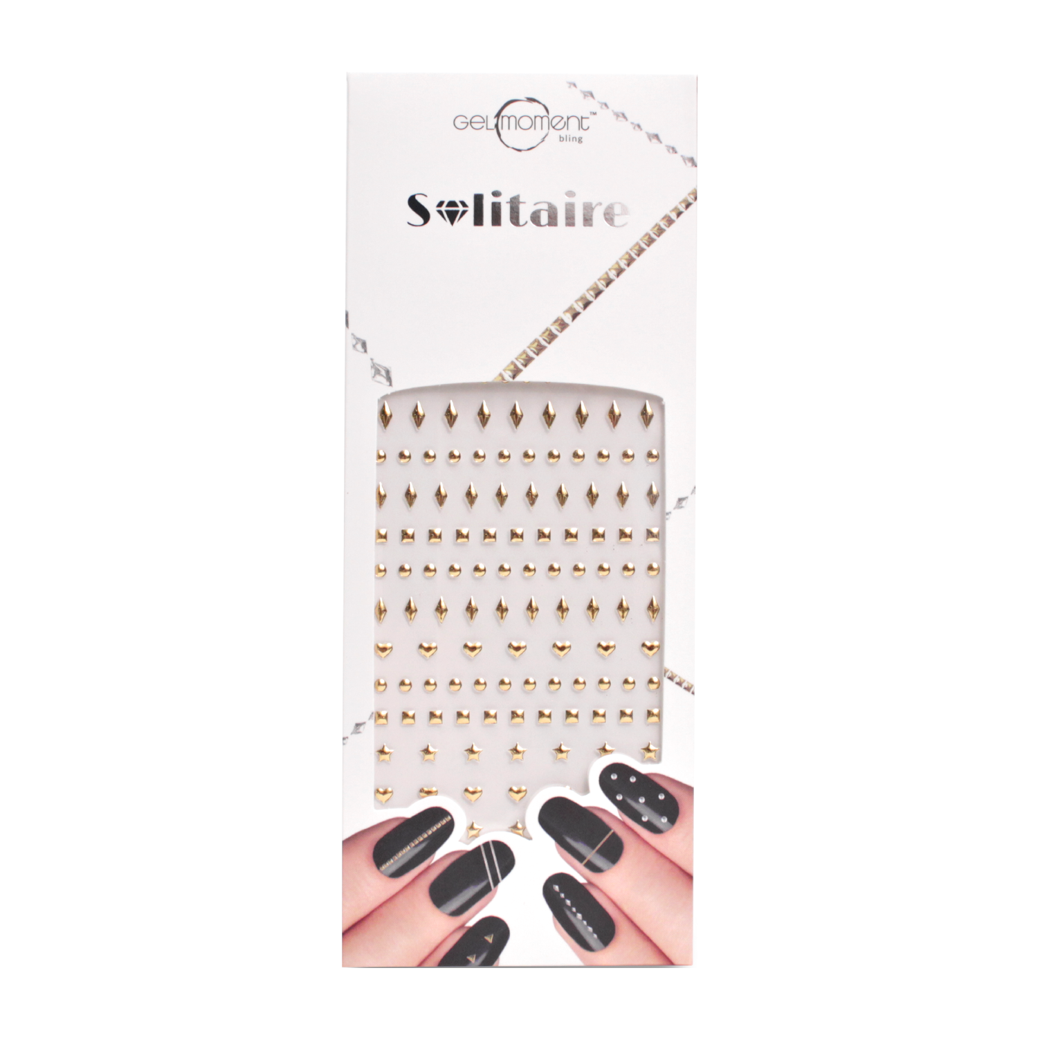 Add some edge to your nail art with these adhesive gold coloured nail studs - the perfect bling for a luxurious lifestyle